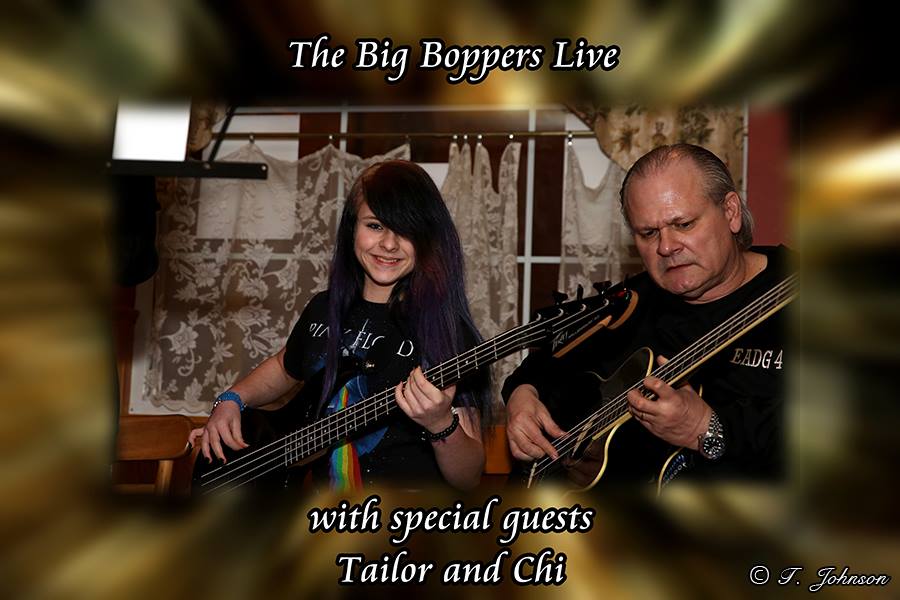 Chianne Montecki (electric bass guitar) & John Falstrom (acoustic/electric bass guitar) jamming with "The Big Boppers" at Mama & Me Pizzeria (Homewood, IL). Fourteen year old Chianne is an "Ace" student of John's. March 29, 2014 |